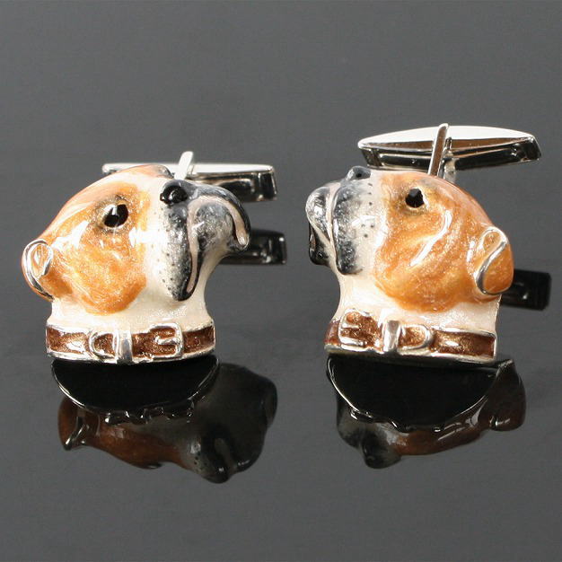 イタリア・サツルノ社の洗練されたデザインのカフスボタン。 サツルノ社の熟練の職人が一つ一つ丁寧に仕上げています。 ブラウンのブルドックをデザインしたこのカフリンクスもディテールにまでこだわっており…