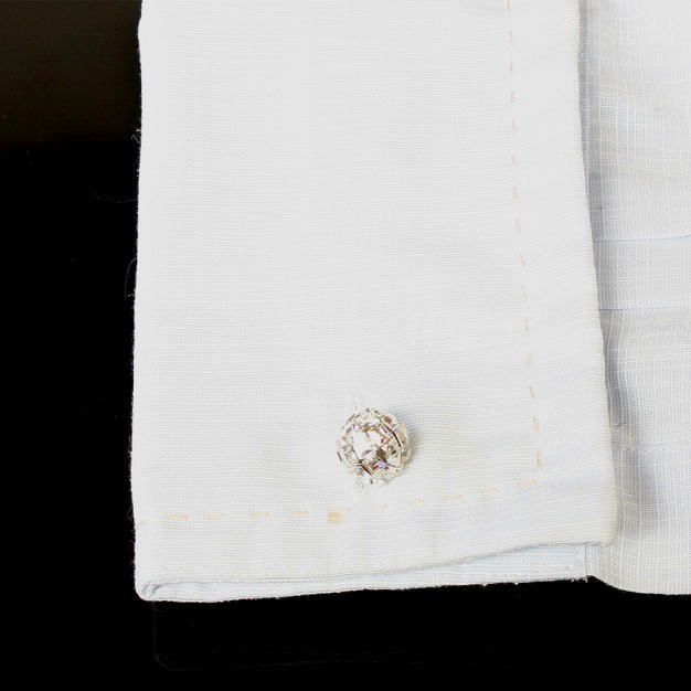ボール状のカフスの表面にブラッククリスタルを 配置したちょっとパンクなイメージのカフスボタン 袖口に注目が集まりますよ