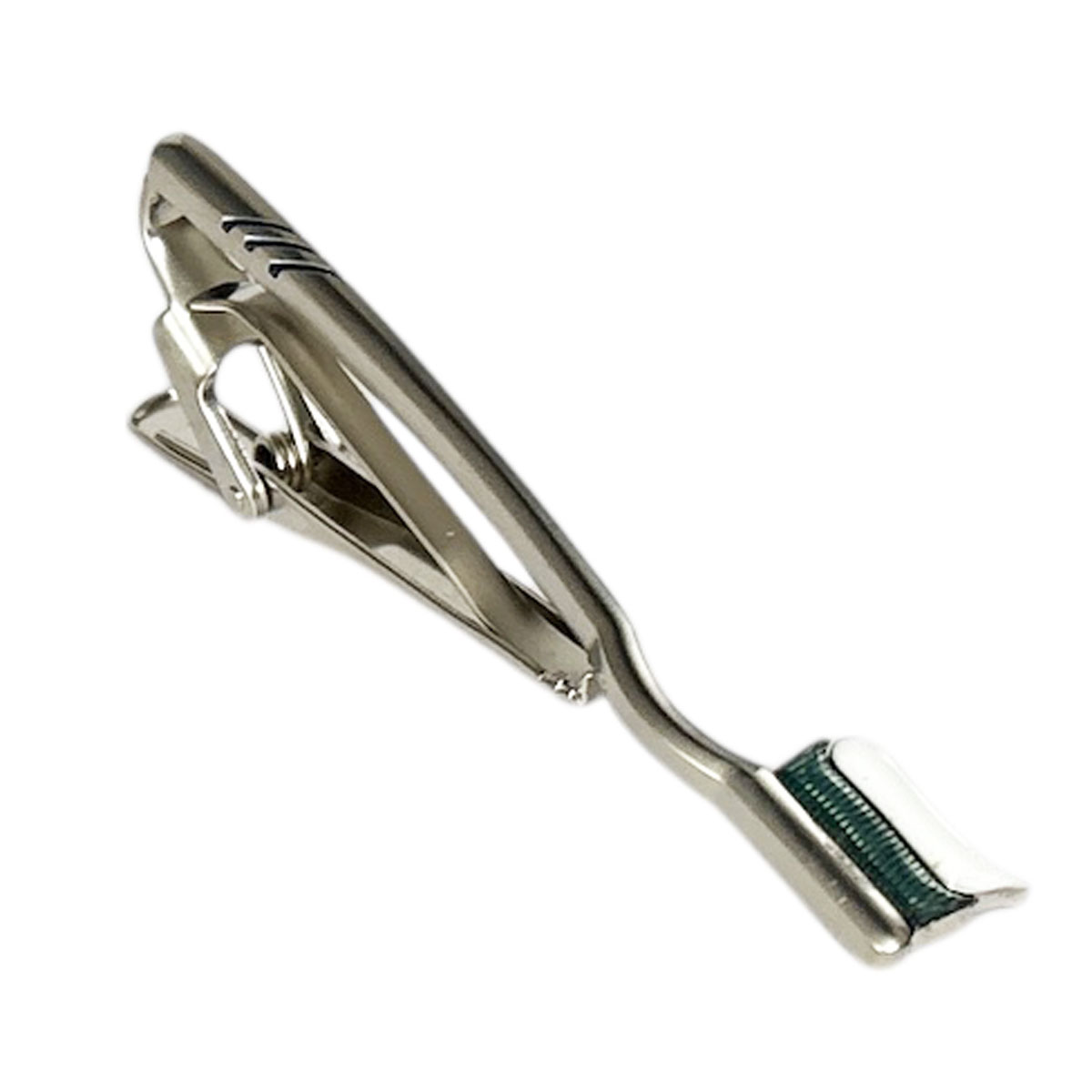 タイピンの表面に緩やかなラインのデザインが 入ったネクタイピン シンプルだけど使い勝手が良いですよ。