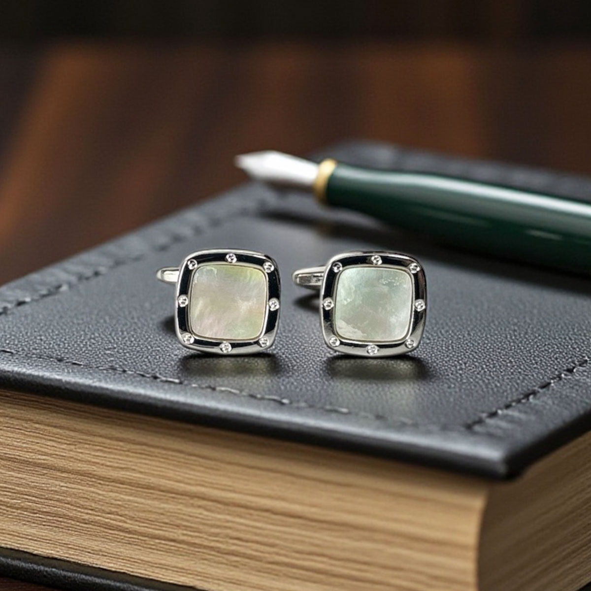 MOPとはマザーオブパールの略称です。 マザーオブパールとはその名の通り真珠の母。 つまり、真珠を作り出す貝のことです。そのシェル(貝)を使用して 作った贅沢なカフスです。