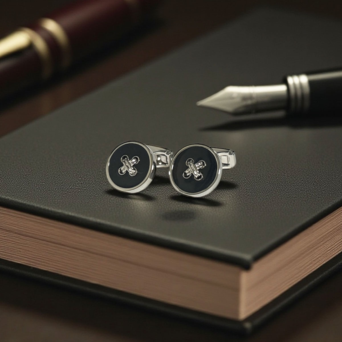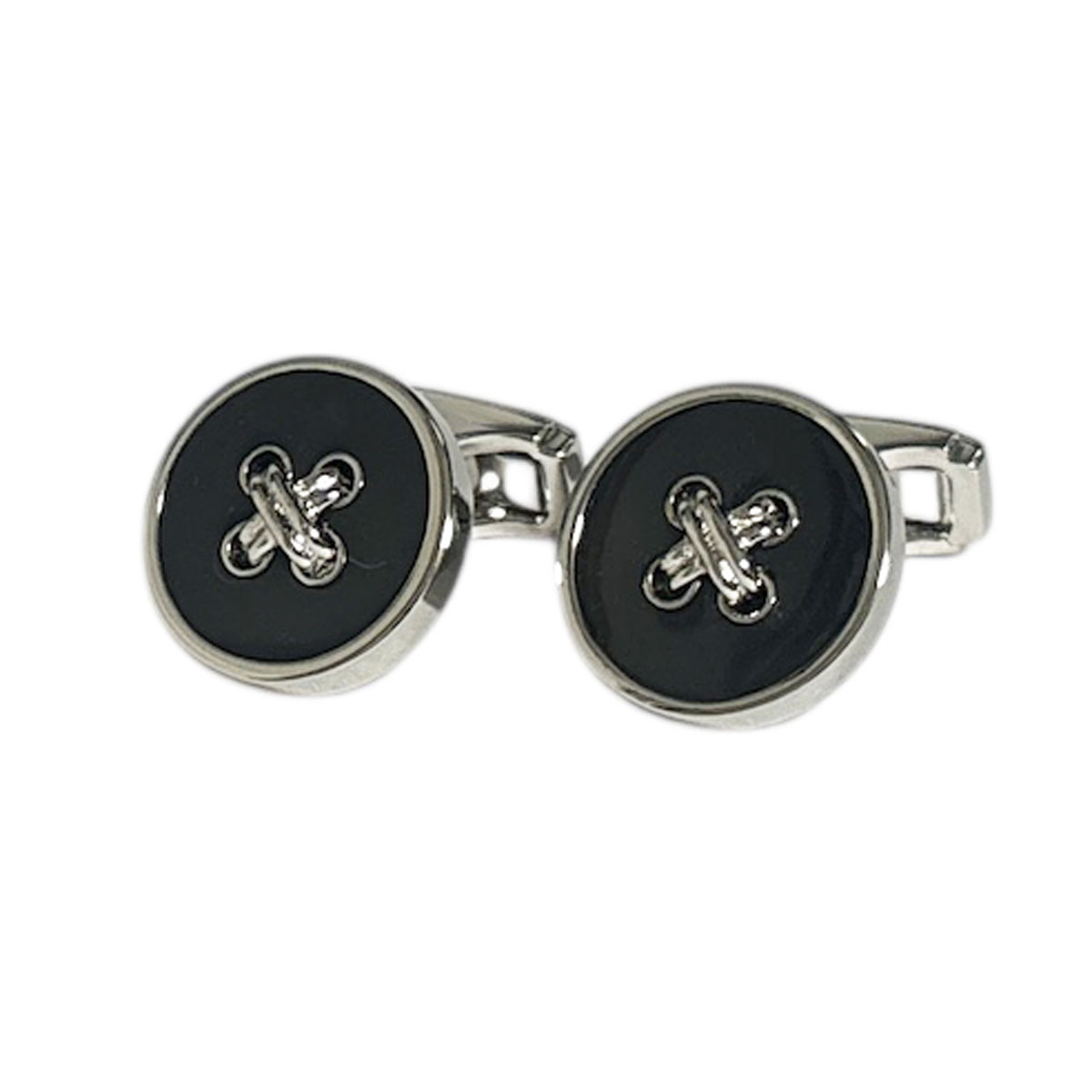 英国トンプソン(Thompson)のブラックエナメルを使用したステッチカフスボタンは、