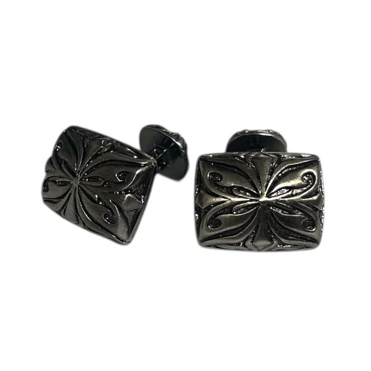 スクエアーのフレームの中に凹凸のデザインが 入ったカフスボタン。存在感もあり、 かつゴージャス感もありますよ。