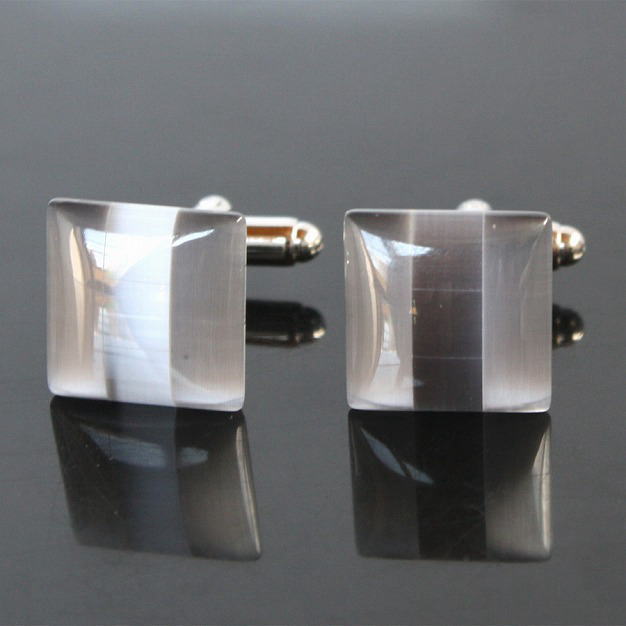 ピンクのキャッツアイを使用したカフスボタン。 スクエアの形で袖口のアクセントになりますよ カラーシャツとの相性は抜群です