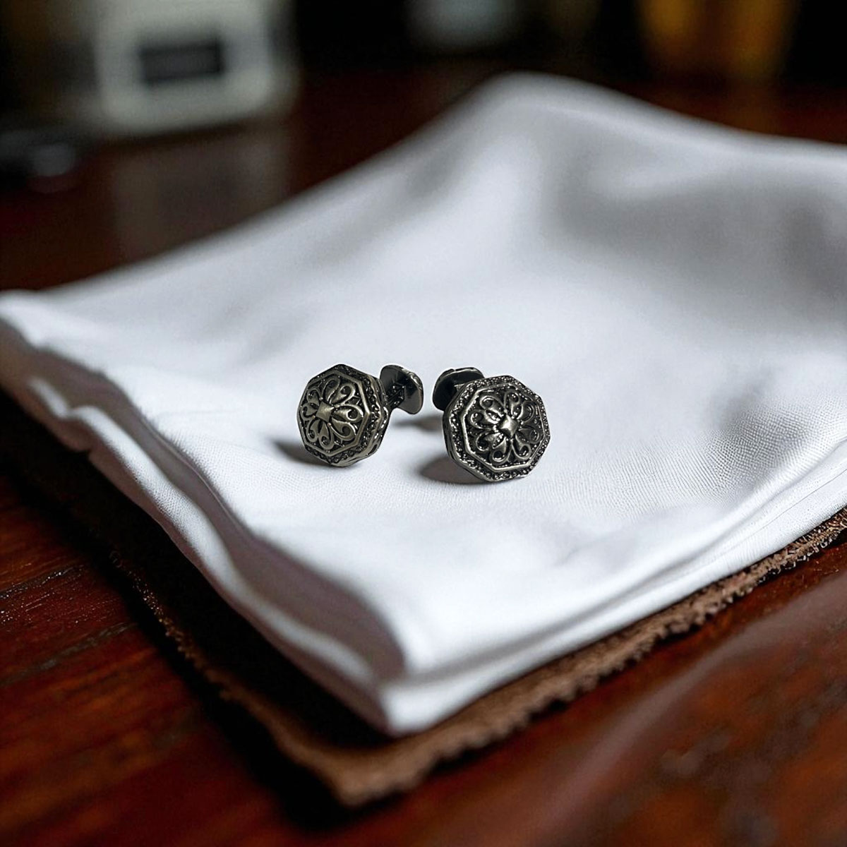 スクエアーデザインのカフスの中に 岩のようなロックデザインが施されたカフスボタン。 シンプルだけど使い勝手が大変良いですよ