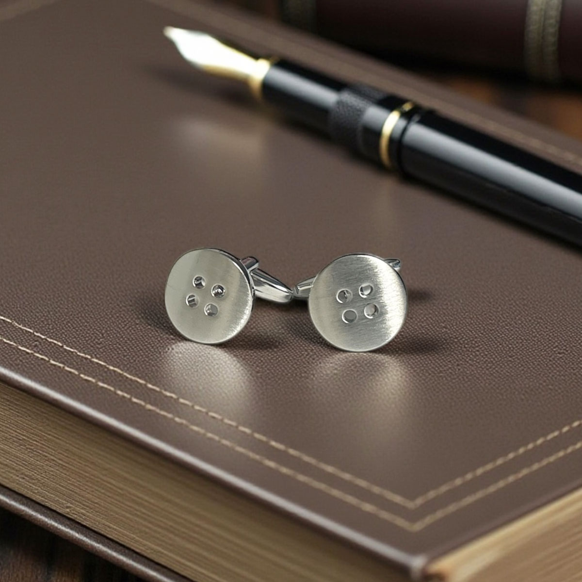 英国・エリザベスパーカーのカフスボタン。 中央にシールド、左右にライオンを配置した エリザベスパーカーのロゴマークをデザインしました