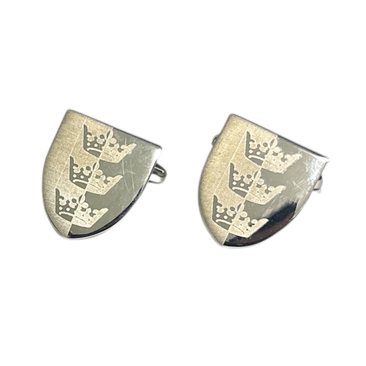 英国・エリザベスパーカーのカフスボタン。 中央にシールド、左右にライオンを配置した エリザベスパーカーのロゴマークをデザインしました