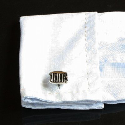 スピーカーをデザインしたカフスボタン。 形もラウンドでボタンのようなので 使いやすいですよ