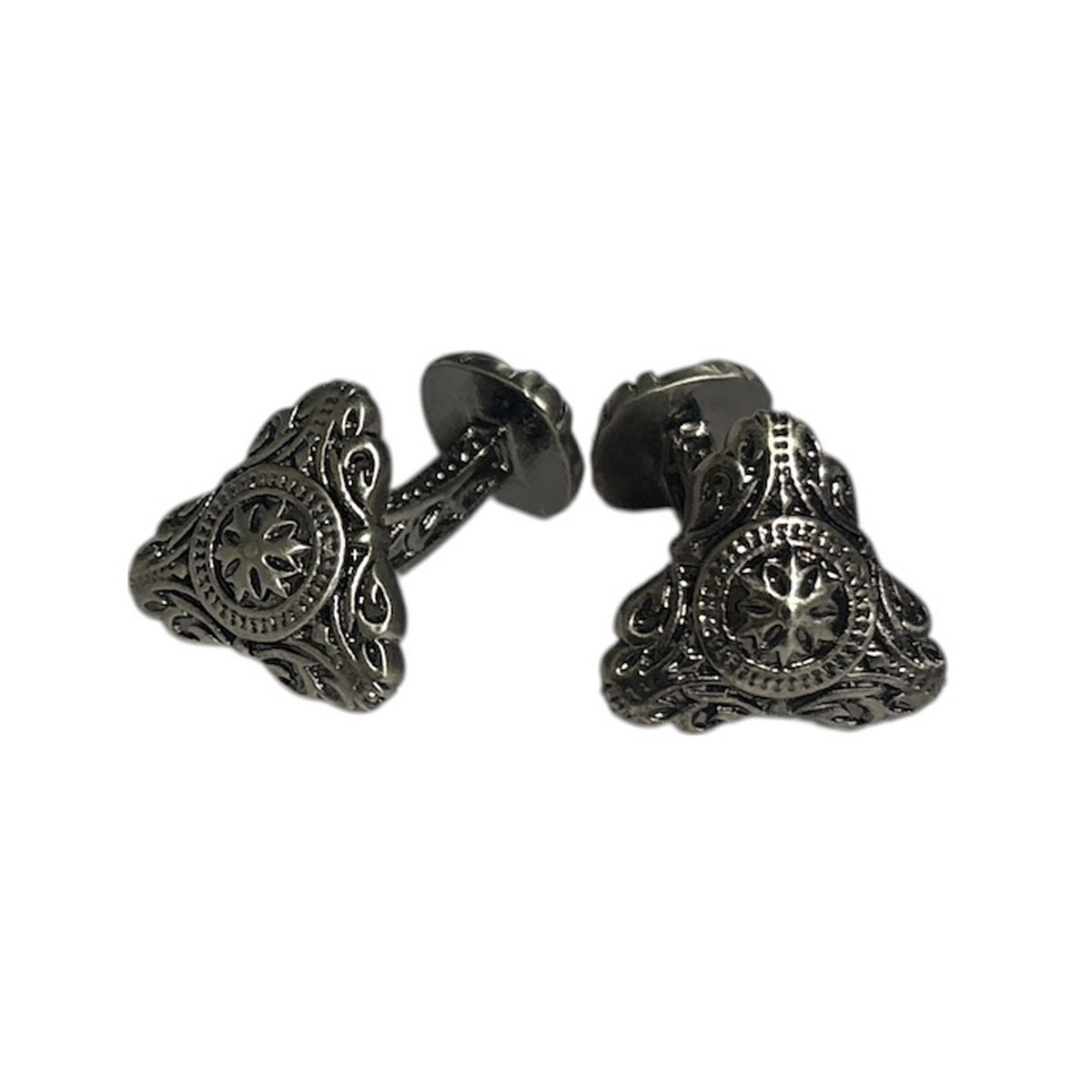 ビンテージデザインのカフスボタン。 ラウンドフレームの中にグランドクロスが デザインされスタイリッシュな仕上がりですよ