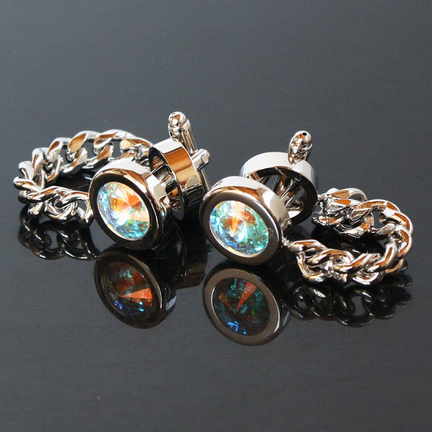 オーストリアのスワロフスキー社のモンタナクリスタルを使用したカフスボタン。 チェーンがワイシャツを包み込み 袖口を上品に演出しますよ。 【ラップアラウンドカフス】