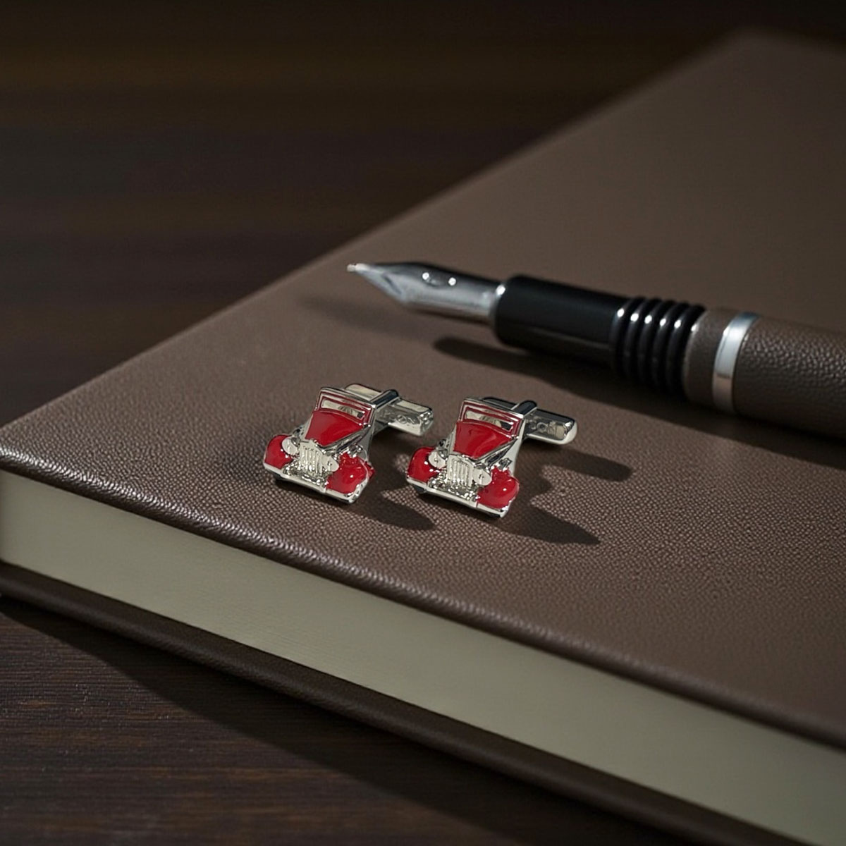 黒いビンテージカーをデザインした 英国トンプソンのカフスボタン。 袖口を華やかに演出いしますよ