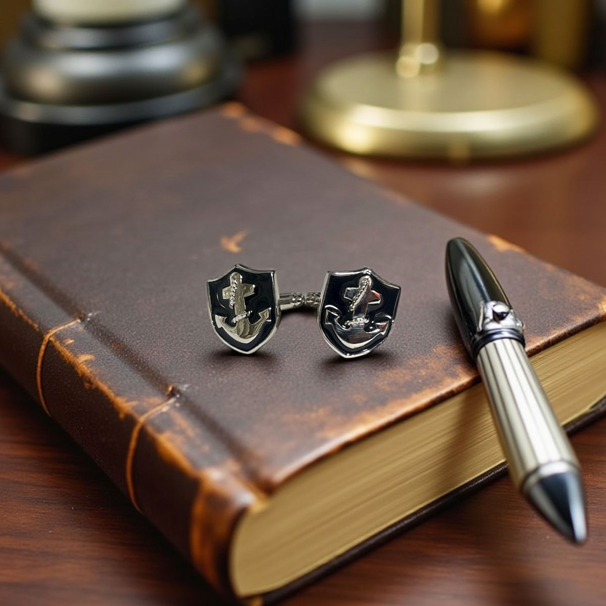 アンカーとロープをモチーフにしたこのカフスボタンは、