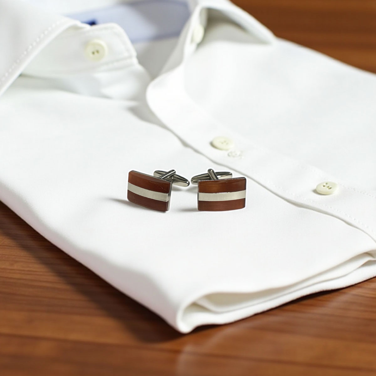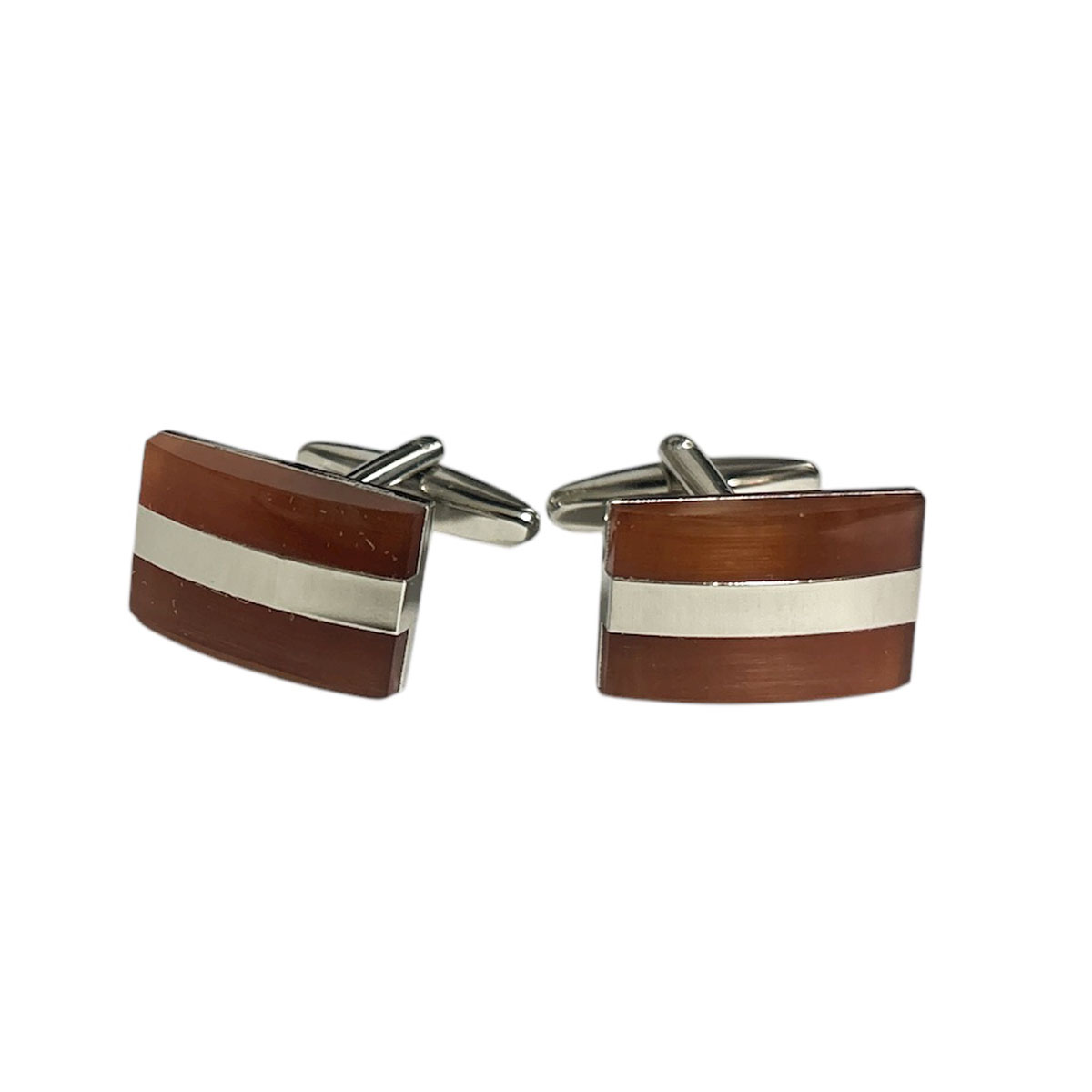 ネイビーのキャッツアイを使用した 横ストライプのカフスボタン 袖口のアクセントにおすすめです♪