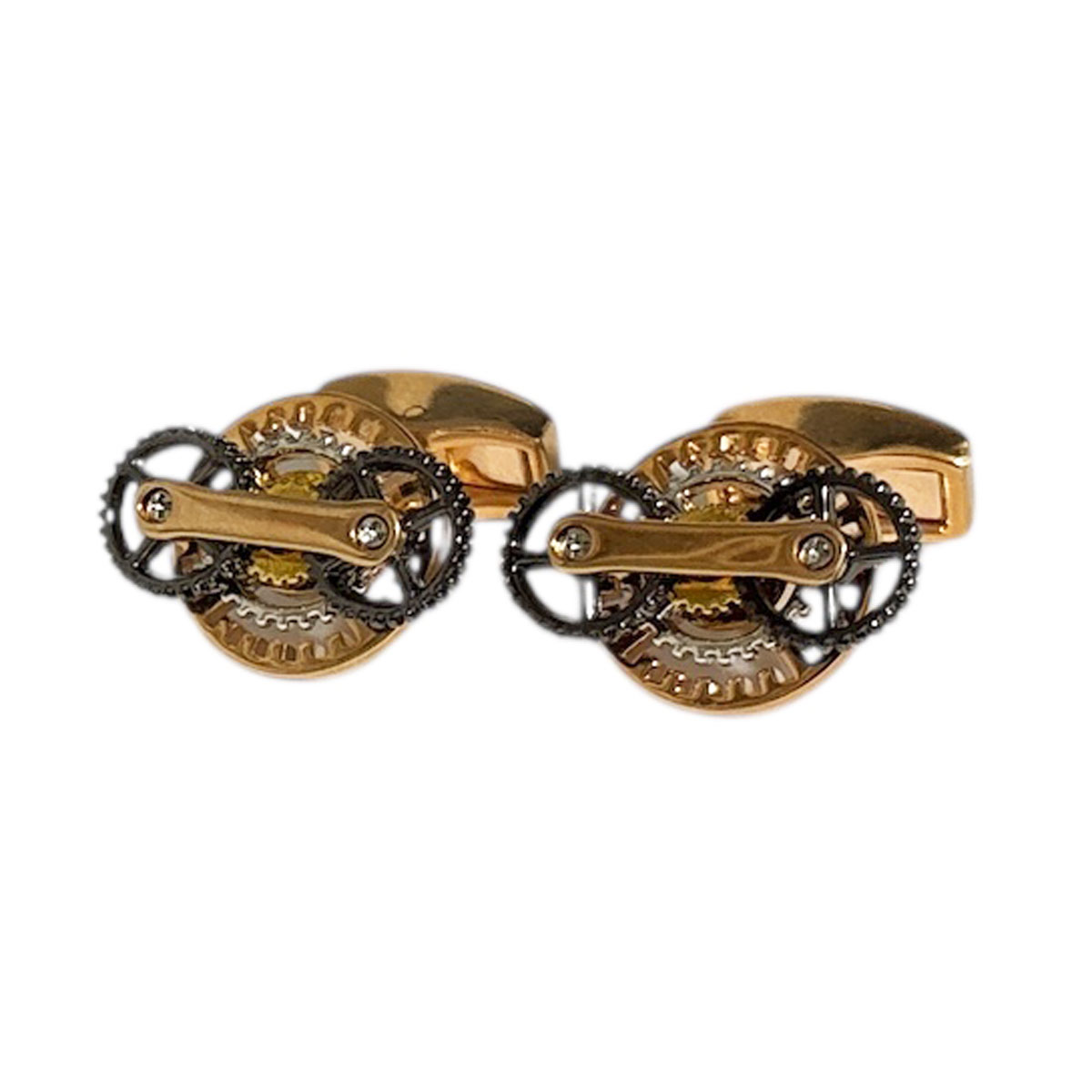 英国で人気のタテオシアンのカフスボタン ピンクゴールドをベースとしたギアモチーフ。 それぞれのギアは回転しますよ♪