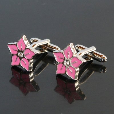 赤い桜をモチーフにしたカフスボタン 中央にはクリスタルが配置されていますよ。 袖口のアクセントにおすすめです♪