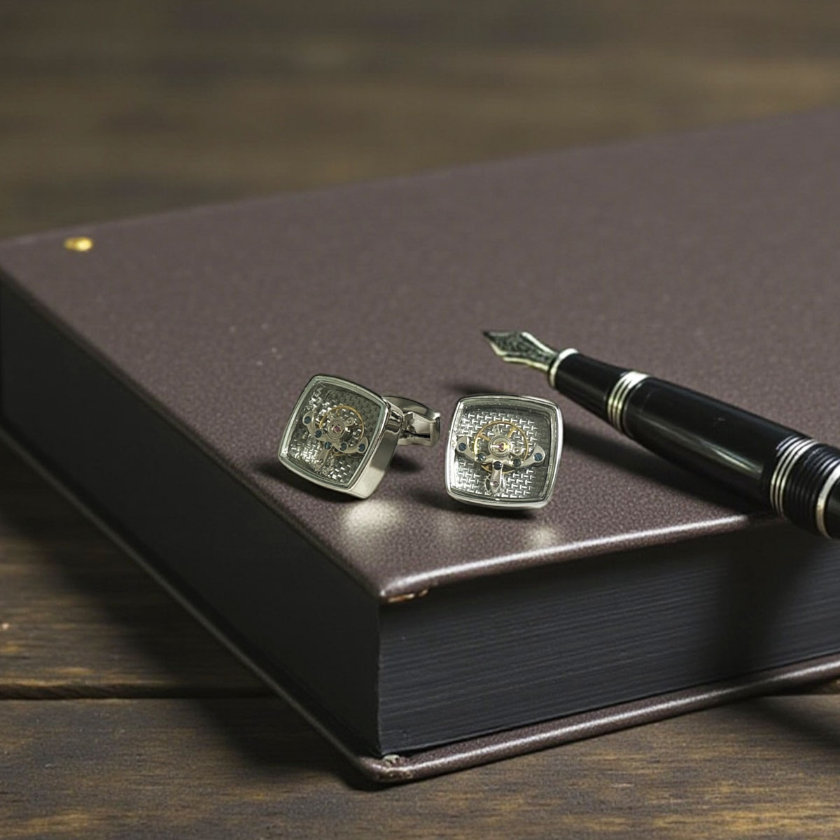 シルバースケルトンムーブメントカフスボタン(カフリンクス) [cf1383]