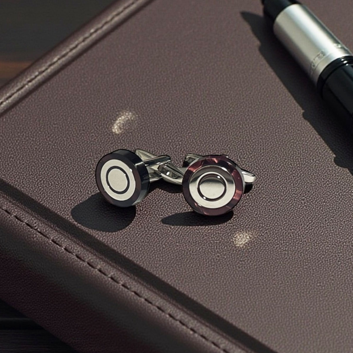 英国・エリザベスパーカーのカフスボタン。 ラウンドシェイプのデザインの淵にはグレーを 配置したお洒落なデザインですよ。
