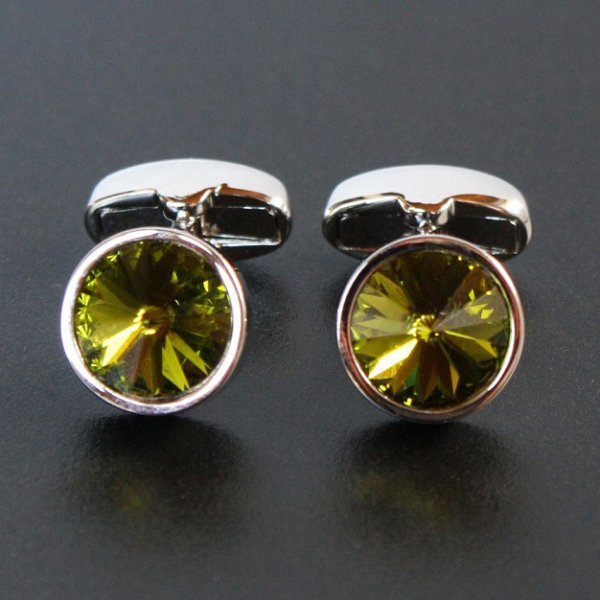 ラウンドペリドットクリスタルカフスボタン(カフリンクス) [cc041-a-4]