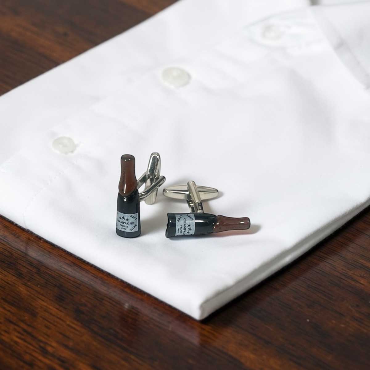 ワインオープナーをデザインした スタイリッシュなカフスボタン。 さり気なく袖口から覗くカフスに注目が集まりますよ♪