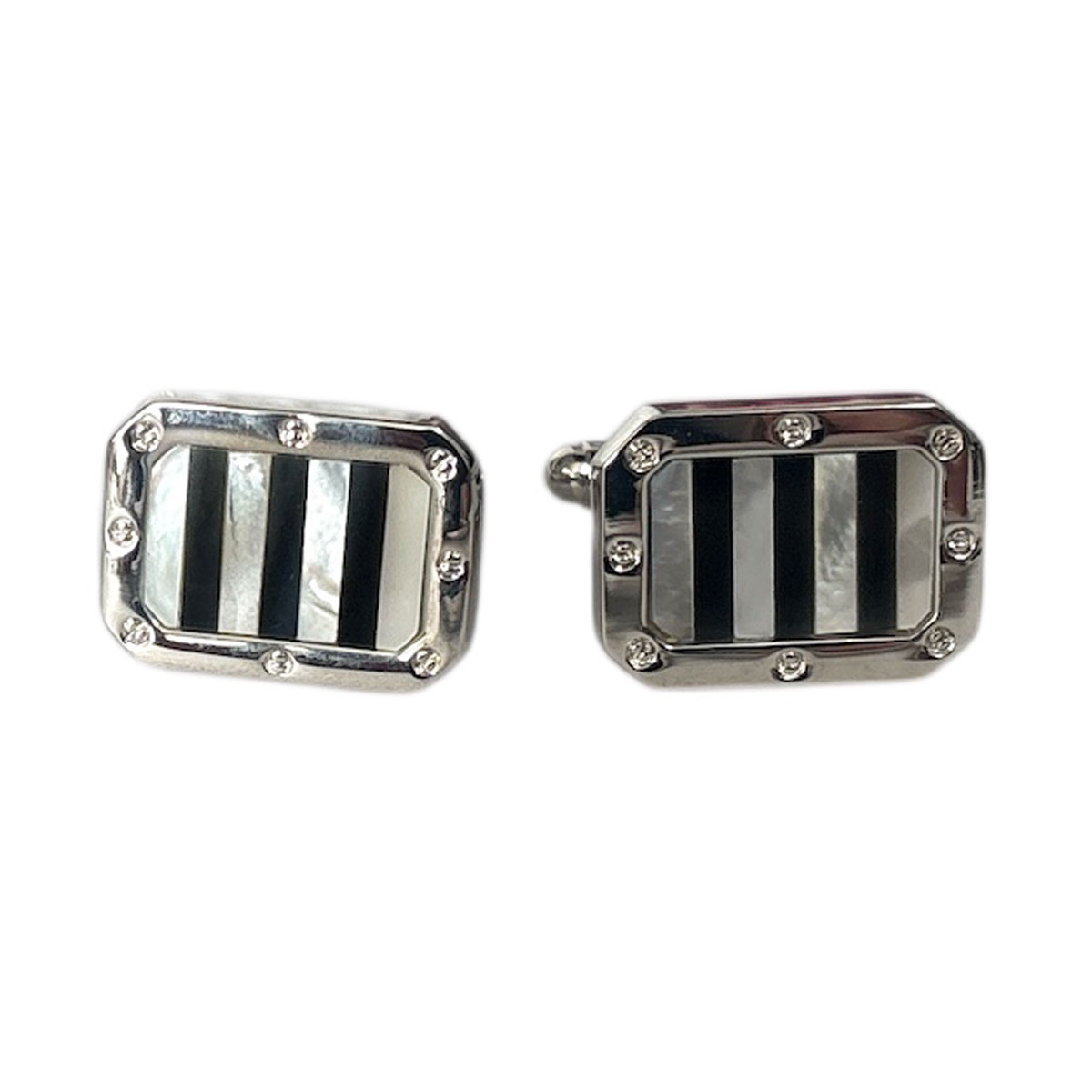 マザーオブパール(MOP)を使用したネクタイピンと MOPとオニキスのデザインカフスボタンをセットにしました。 カフスとネクタイピンがセットで入るケース付きとなります。 ベースカラーーシルバー 素材…