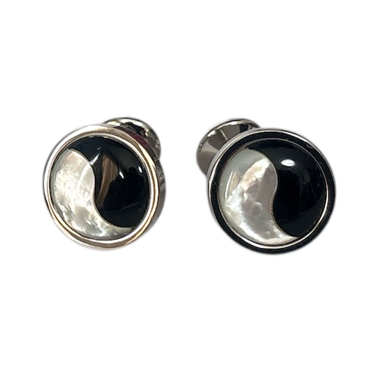 ブラックオニキスを使用したネクタイピンと MOPとオニキスのラウンドチェックカフスボタンをセットにしました。 カフスとネクタイピンがセットで入るケース付きとなります。 ベースカラーーシルバー 素材ー…