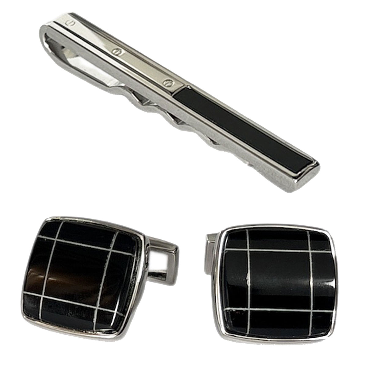オニキスネクタイピン チェックラウンドカフスセット [ed150cf746]