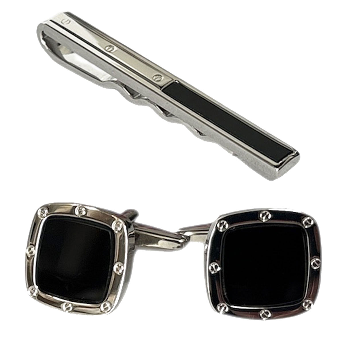 ブラックオニキスを使用したネクタイピンと オーバルデザインオニキスカフスボタンをセットにしました。 カフスとネクタイピンがセットで入るケース付きとなります。 ベースカラーーシルバー 素材ー…