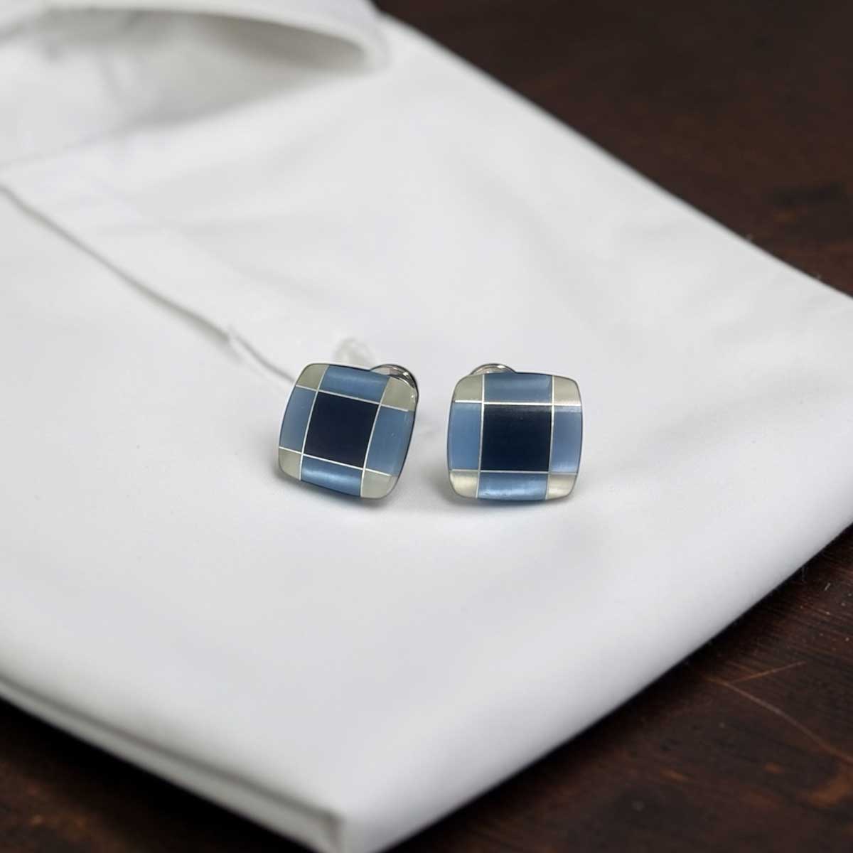 ブルーネイビーキャッツアイカフスボタン(カフリンクス)