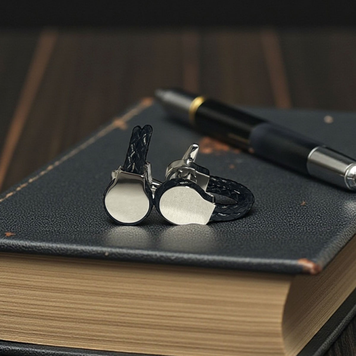 elizabeth parker エリザベスパーカー・ダークブラウンツインレザーカフスボタン(カフリンクス) [ep2651]