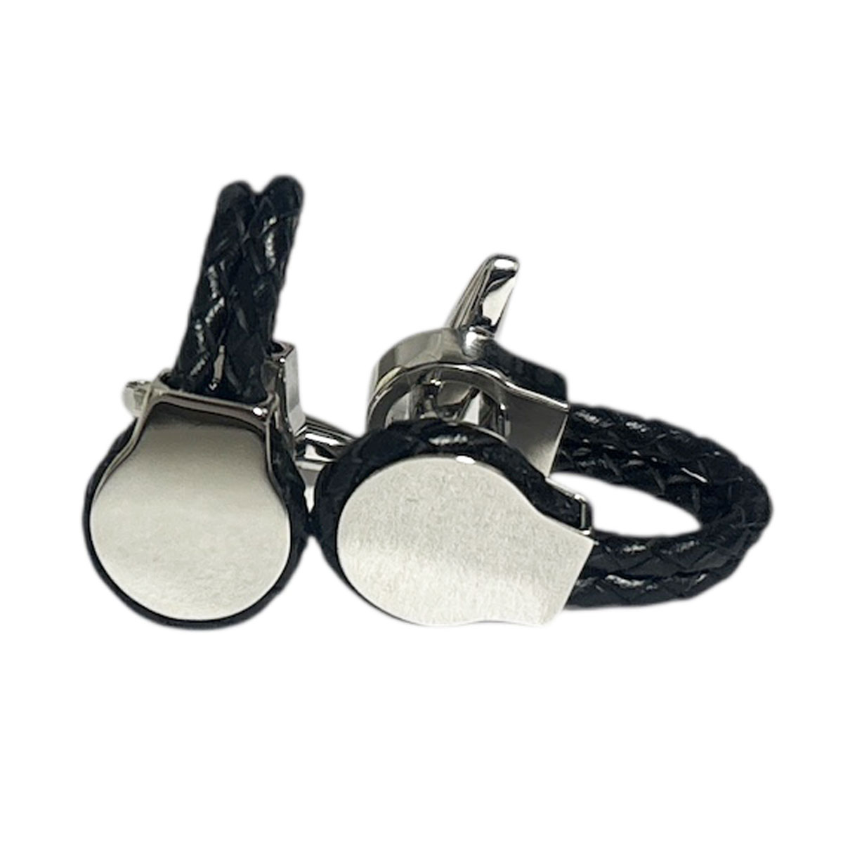 ダークブラウンカラーの編込みレザーを使用した ラップアラウンドタイプのカフスボタン。袖口を包み込むので ホールド感がバツグンですよ♪ ベースカラーシルバー 素材-真鍮(brass) サイズ-15x6…