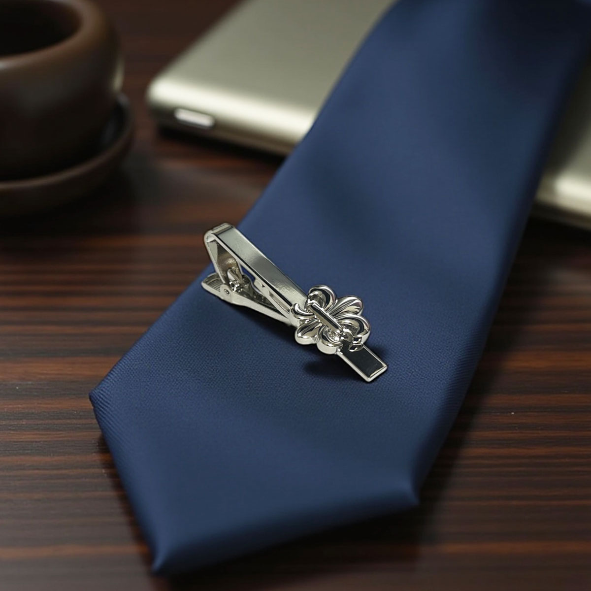 フレアー(ユリの紋章)モチーフを使用した スタイリッシュなネクタイピン。 胸元のアクセントになりますよ。 ベースカラー-アンティークシルバー 素材-真鍮(brass) サイズ-17x45mm