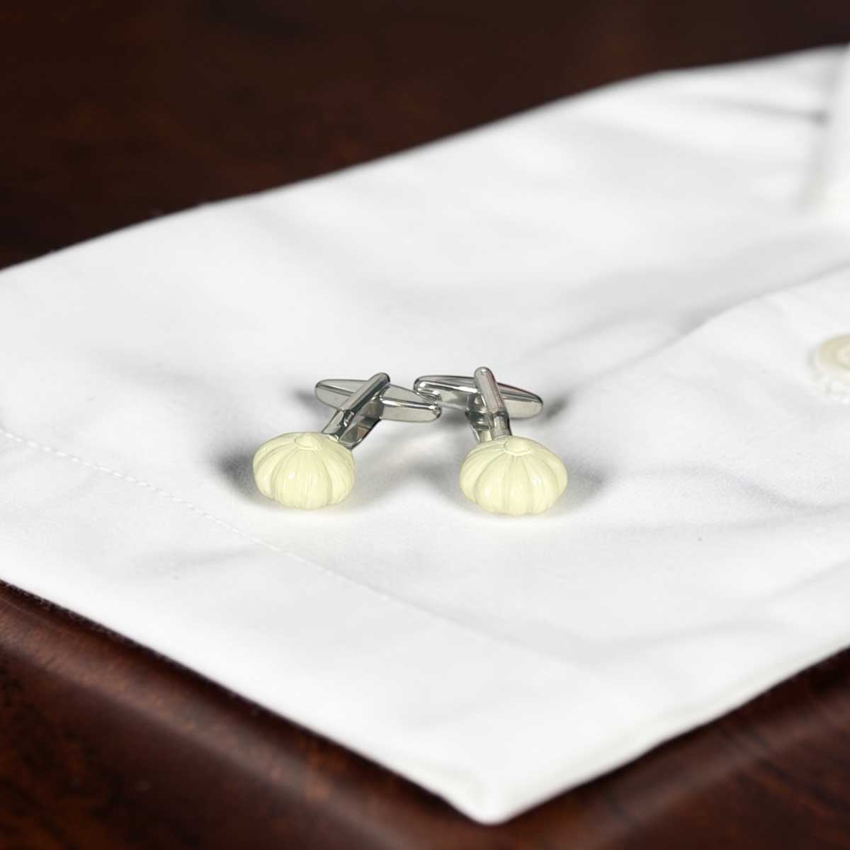 フライパンをデザインしたユニークなカフスボタン。 特にホワイトシャツとの相性がよく、 袖口のアクセントになりますよ。 ベースカラー-シルバー 素材-真鍮(brass) サイズ-18x29mm