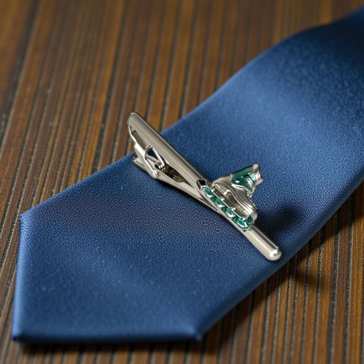 ブルーのエレキギターをデザインした SWANKのネクタイピン。 胸元のアクセントにおすすめです。 ベースカラー-シルバー 素材-真鍮(brass) サイズ-26x58mm