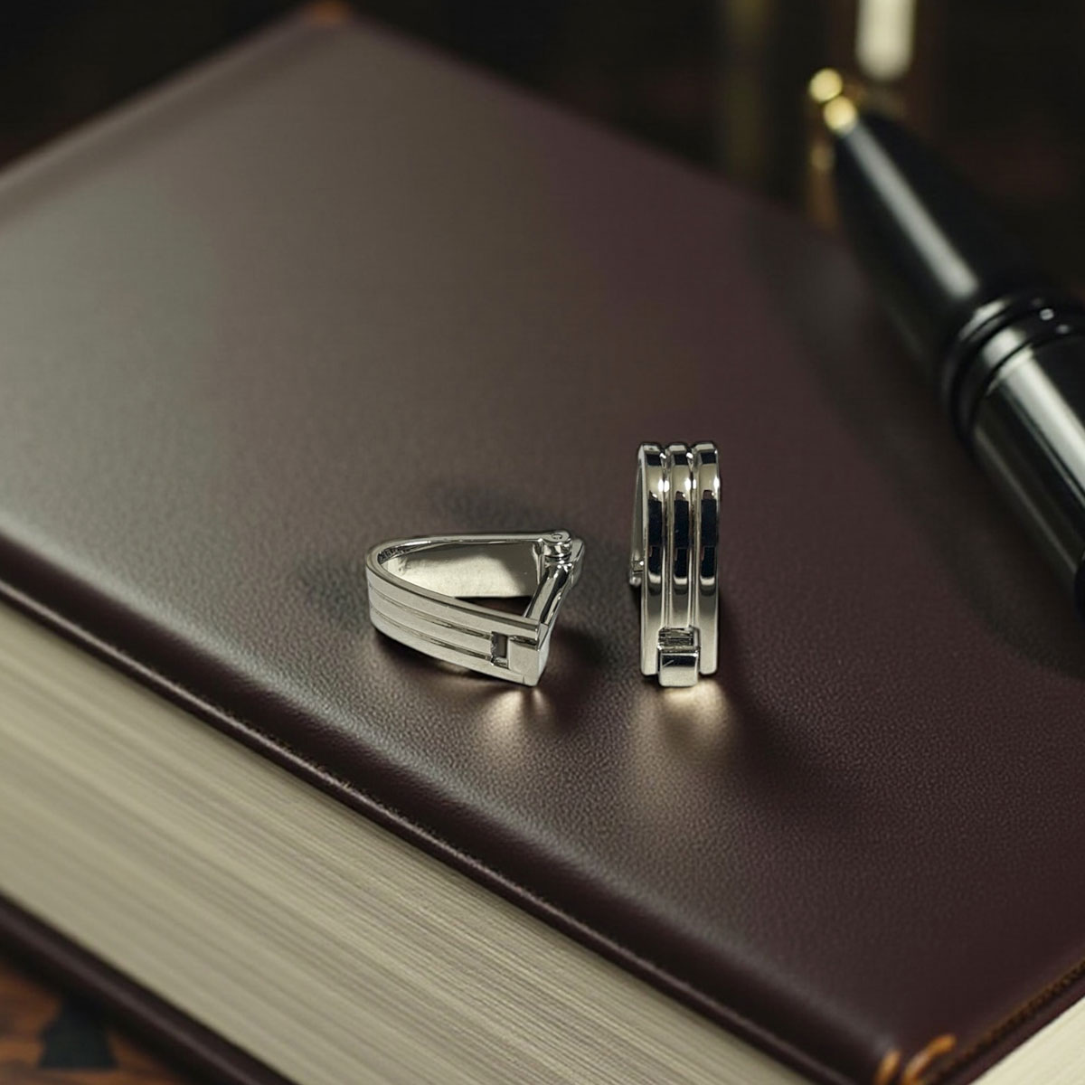シルバーの輝きに繊細なストライプデザインを施した、 ラップアラウンドタイプのカフスボタン。 流れるようなラインが袖口に上品なアクセントを添え、 ビジネスシーンにもフォーマルシーンにも調和します。…