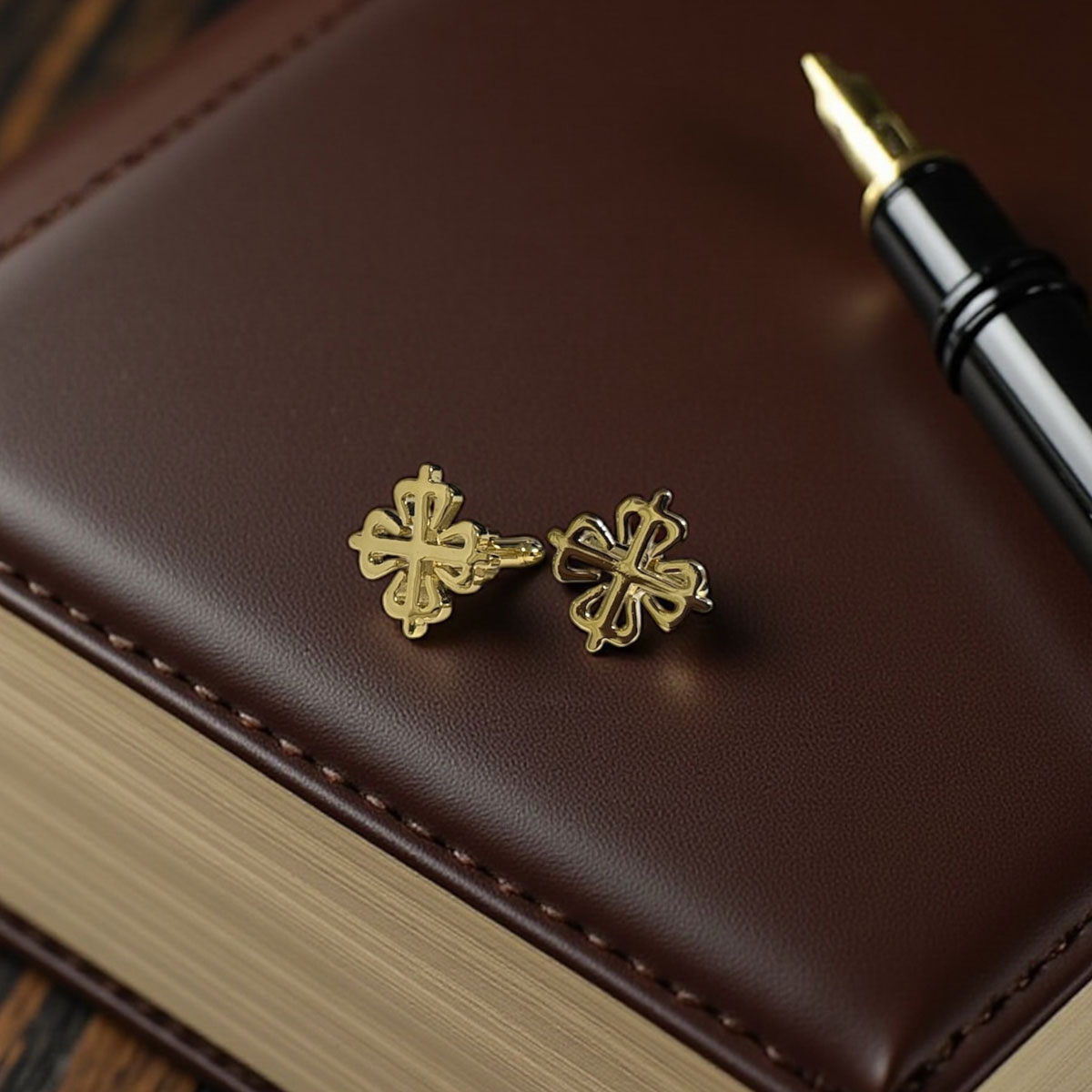 ゴールドコーティングされたカフスボタン。 フェイス部分にはクロスデザインが施され サイドにも細かいデザインが施されていますよ。 ベースカラー-ゴールド 素材-真鍮(brass) サイズ-…