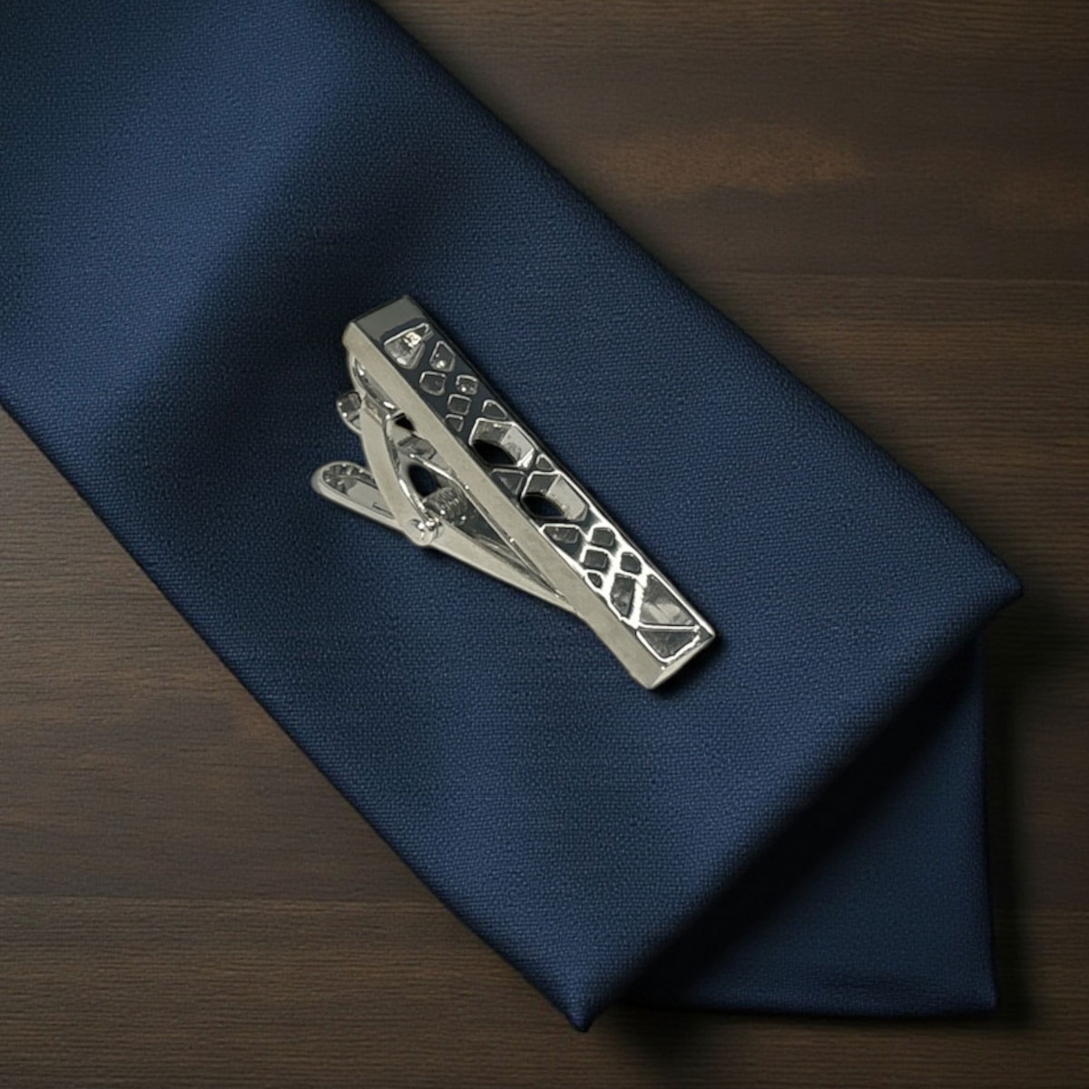 ブルーのチェックデザインが施された スタイリッシュなネクタイピン。 胸元をさり気なくお洒落に演出しますよ。 ベースカラー-シルバー 素材-真鍮(brass) サイズ-6x57mm