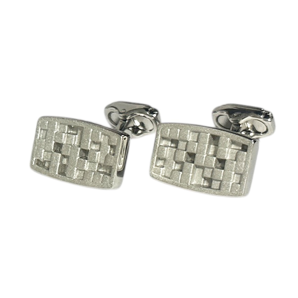 フェイス部分に、ガンメタのたくさんの キューブが高さ違いでデザインされた 綺麗な仕上がりのカフスボタンですよ ベースカラー-ガンメタ 素材-真鍮(brass) サイズ-12x18mm