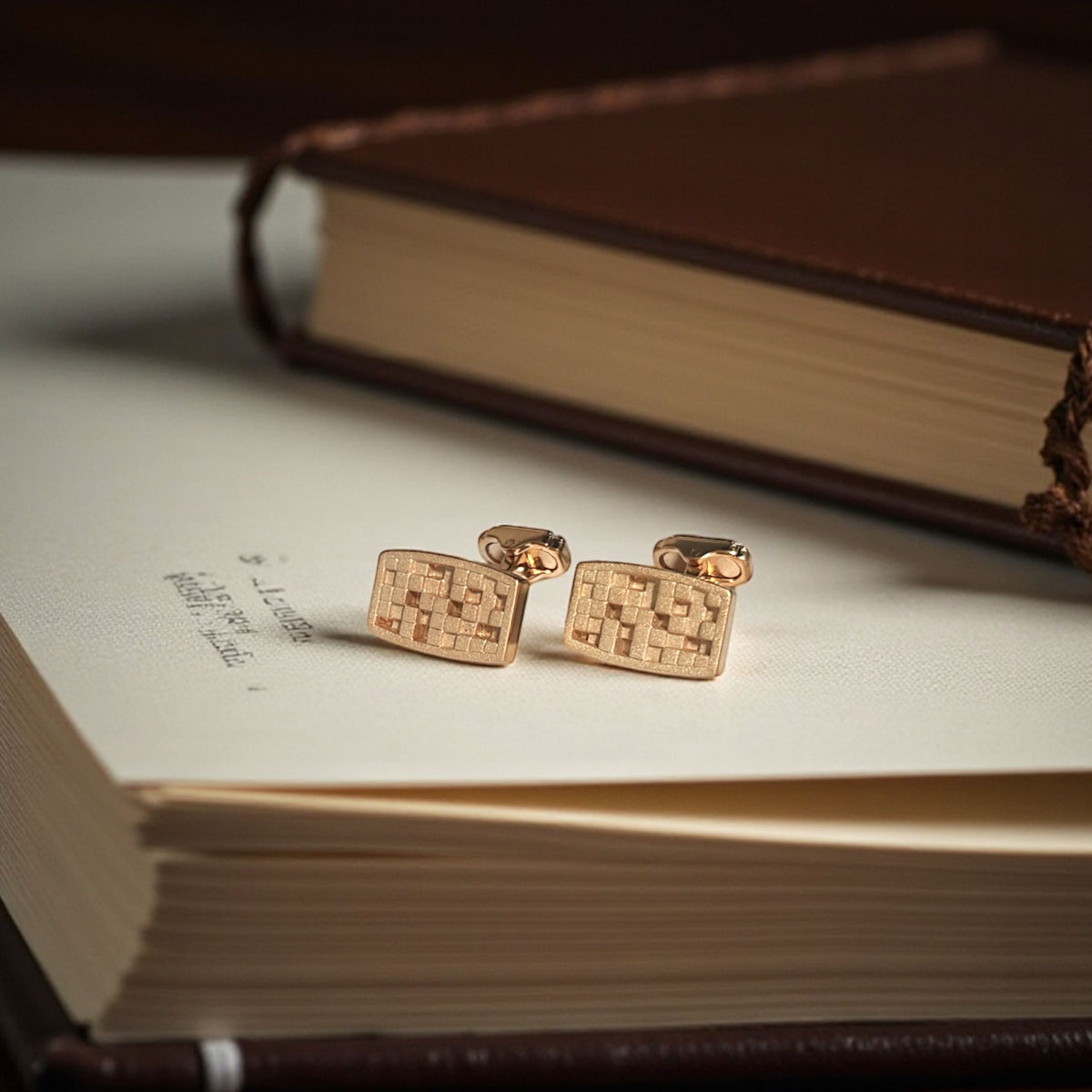 フェイス部分に、ガンメタのたくさんの キューブが高さ違いでデザインされた 綺麗な仕上がりのカフスボタンですよ ベースカラー-ガンメタ 素材-真鍮(brass) サイズ-12x18mm