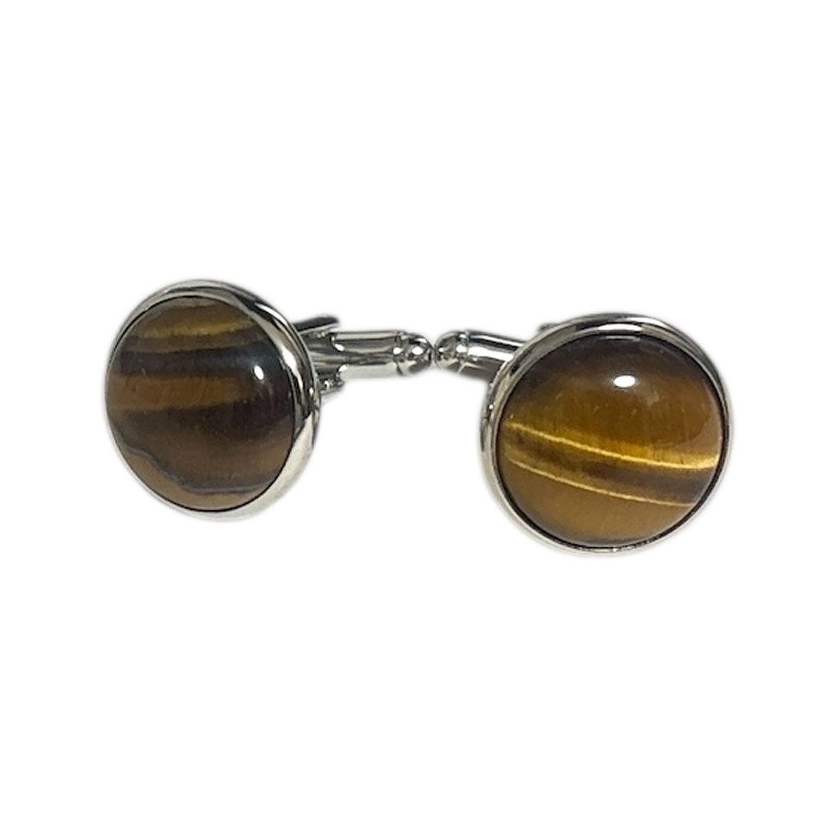 表面と裏面にサイズに異なるピンク色の キャッツアイストーンを配置したカフスボタン 袖口がどの角度から見てもお洒落に見えますよ ベースカラー-シルバー 素材-真鍮(brass) サイズ-直径約11mm
