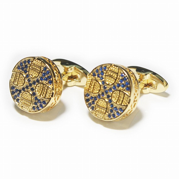 ゴールド ブルークリスタルクロスラウンドカフスボタン