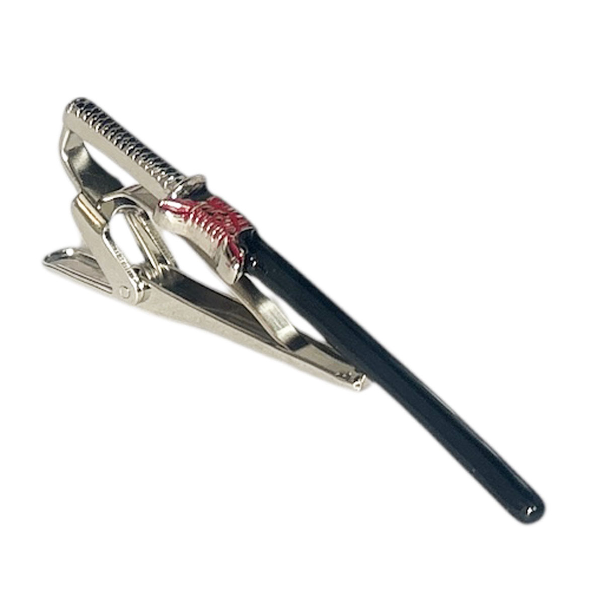 SWANK の日本刀をデザインしたネクタイピン 鞘の部分はレッドカラーとなります。 和のデザインがお洒落ですよ ベースカラー-シルバー 素材-真鍮・ロジウムコーティング サイズ6x57mm