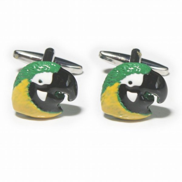 羽を広げたクジャクをデザインした カフスボタン。袖口から覗くクジャクに 注目が集まりますよ ベースカラー-シルバー 素材-真鍮・ロジウムコーティング サイズ-20x23mm