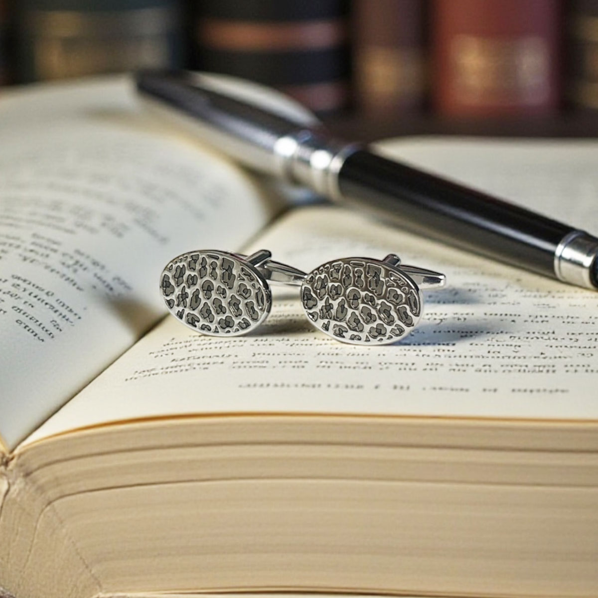 英国・エリザベスパーカーのカフスボタン シルバーカラーをベースにラブレターの 一部が記載されていますよ♪ ベースカラー-シルバー 素材-真鍮(brass) サイズ-直径16mm