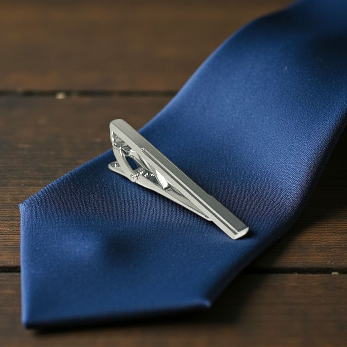 英国・エリザベスパーカーのネクタイピン 先端の部分がカットされたようなデザインに なっていますよ ベースカラー-シルバー 素材-真鍮・ロジウムコーティング サイズ-5x55mm