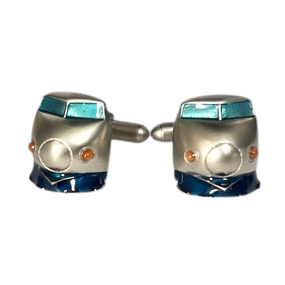 SWANK の刀の鍔の部分をモチーフにした 青いデザインのカフスボタン。 和のデザインがお洒落ですよ ベースカラー-シルバー 素材-真鍮・ロジウムコーティング サイズ18x16mm