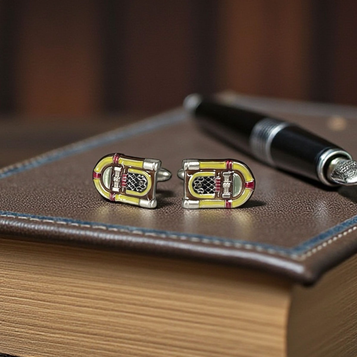 スクラッチもバッチリ♪ coolなターンテーブルを モチーフにしたカフスボタン。 視線が袖口に釘付け間違いなし♪ プレゼントとしても大変喜ばれますよ。