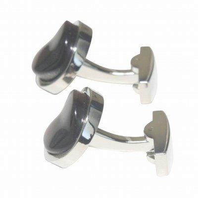 キャンディーのようなブラック ストーンを使用した ラウンドシェイプのカフスボタン ベースカラーーシルバー 素材ーbrass(真鍮) サイズー直径18mm