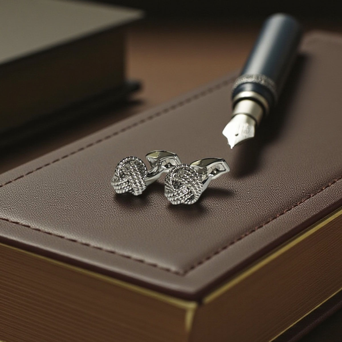 英国・タテオシアンのカフスボタン 伝統的なノットデザインカフスはシンプルで 使い勝手が大変良いですよ。 ベースカラー-シルバー 素材-真鍮(brass) サイズ-12x12mm