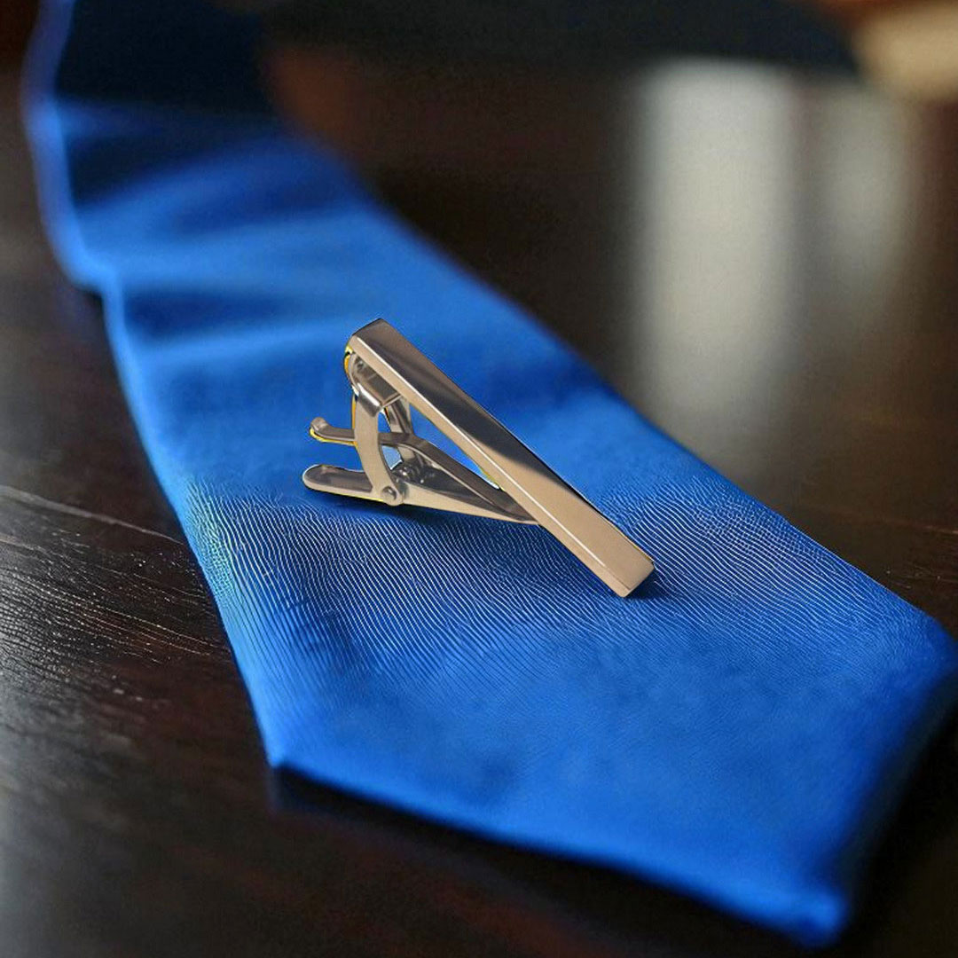 スタイリッシュなシルバーカラーのショートネクタイピン。 ショートネクタイピンは細めのネクタイ(ナロータイ)や スリムタイとの相性が良いですよ。 胸元をさりげなく、かつ上品に演出しますよ