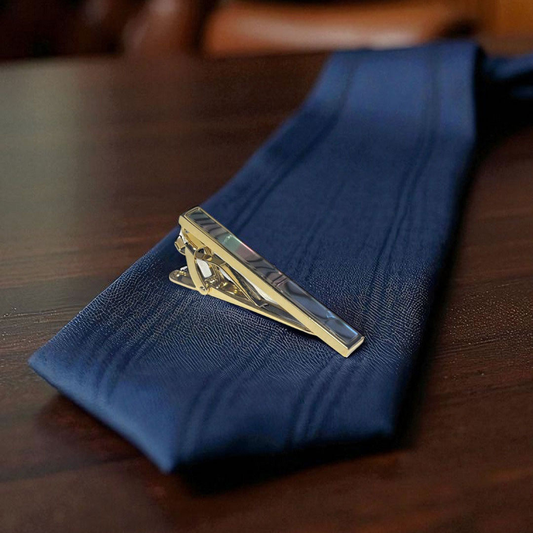 スタイリッシュなゴールドカラーのショートネクタイピン。 ショートネクタイピンは細めのネクタイ(ナロータイ)や スリムタイとの相性が良いですよ。 胸元をさりげなく、かつ上品に演出しますよ