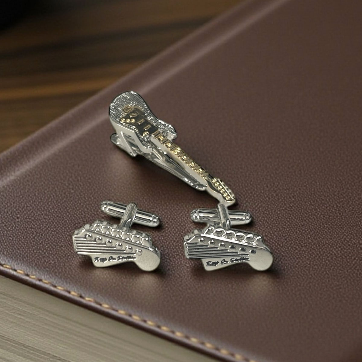 ギターモチーフカフスボタン・ネクタイピンセット [cf1328cf609]